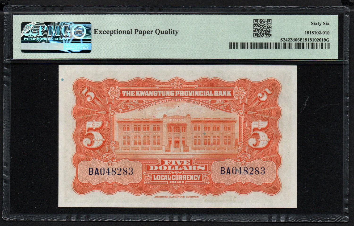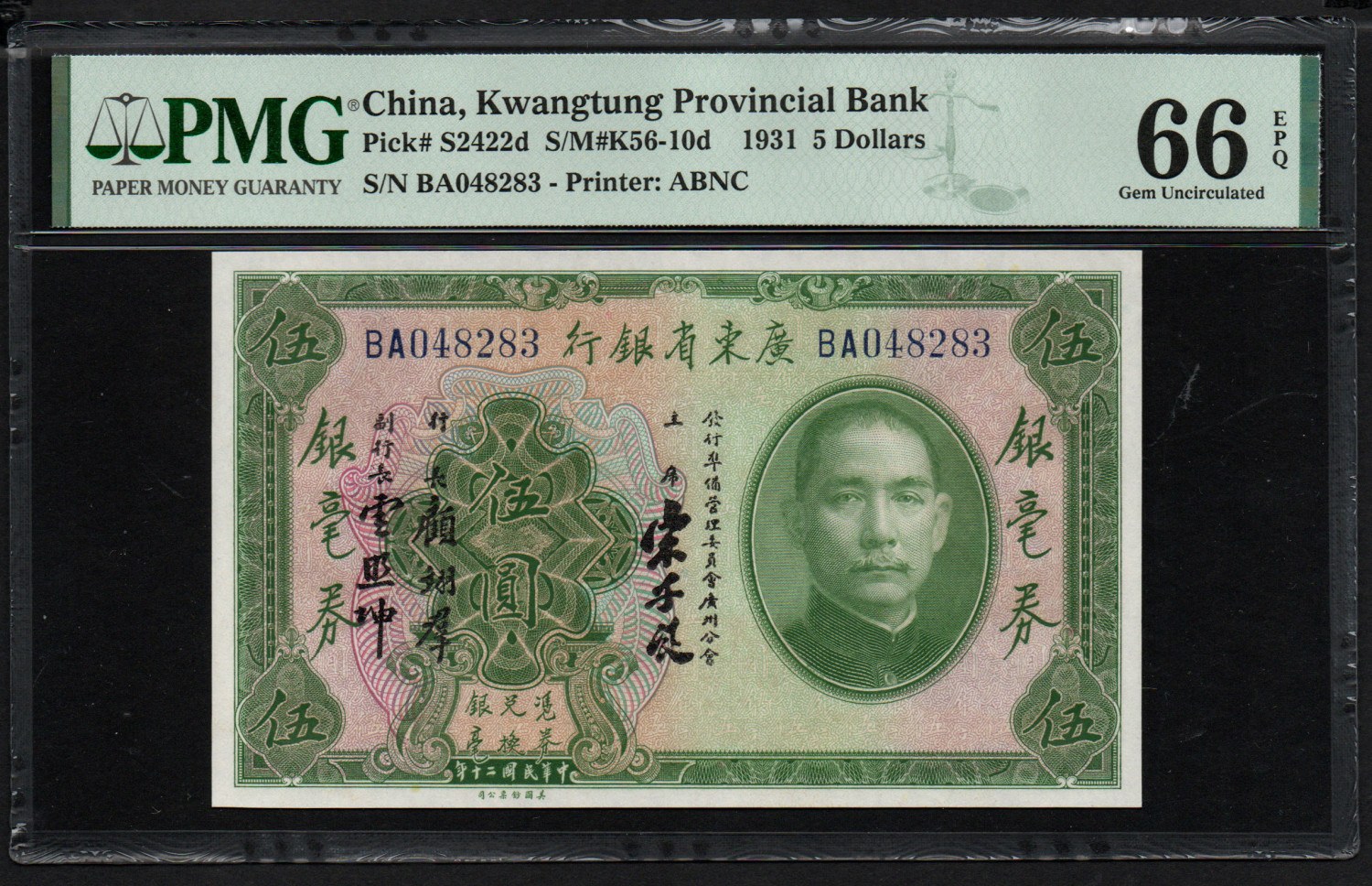 China (Kwangtung) 5 Dollars 1931 - PMG 66 EPQ Gem Uncirculated