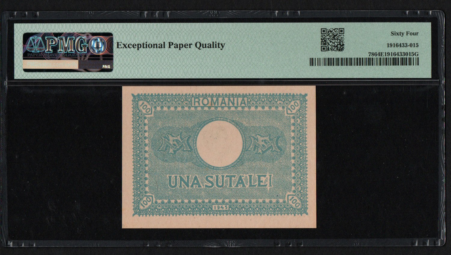 Rumänien 100 Lei 1945 - PMG 64 EPQ Choice Uncirculated