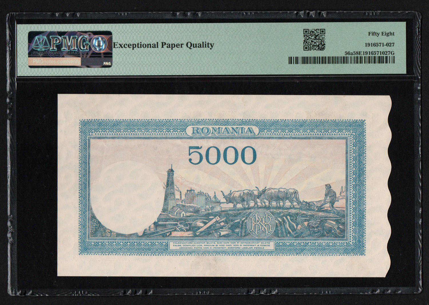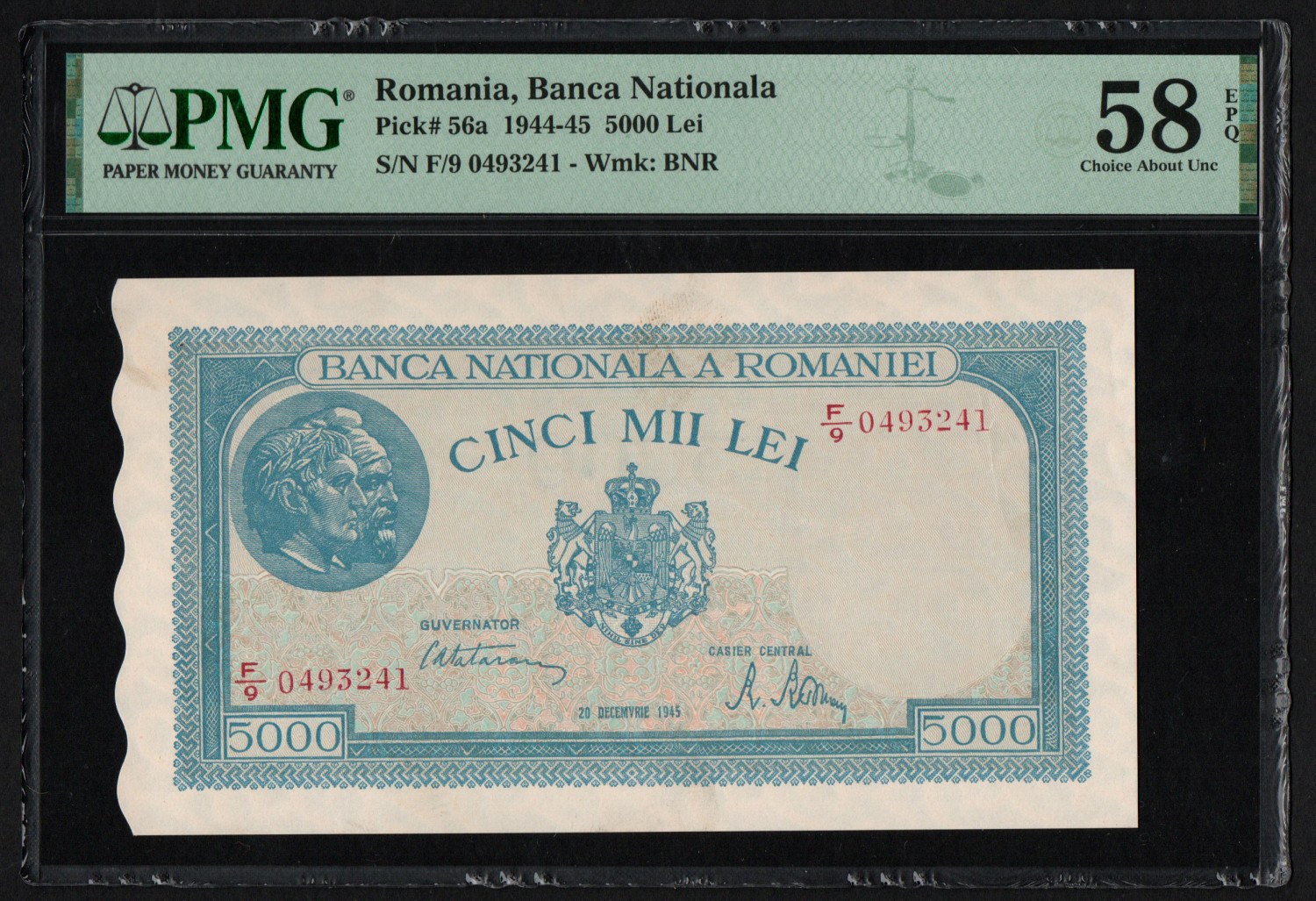 Rumänien 5000 Lei 1944-45 - PMG 58 EPQ Choice About UNC