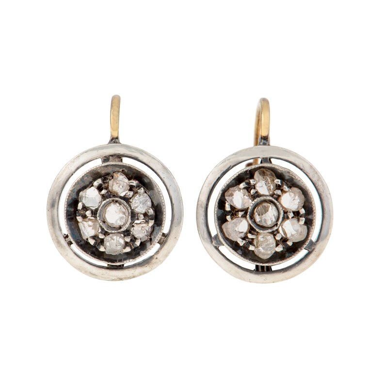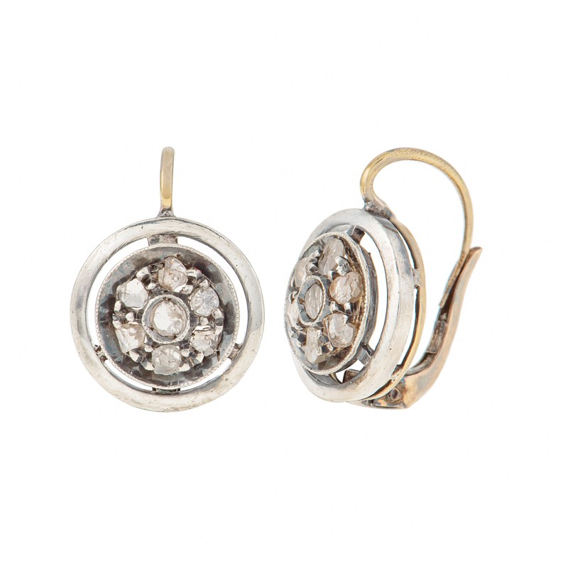 Gold Pr. ~ 0,580, Silber, Diamantrauten, Gewicht: 2,85 g; Maße: 1,5 x 1,1 cm;